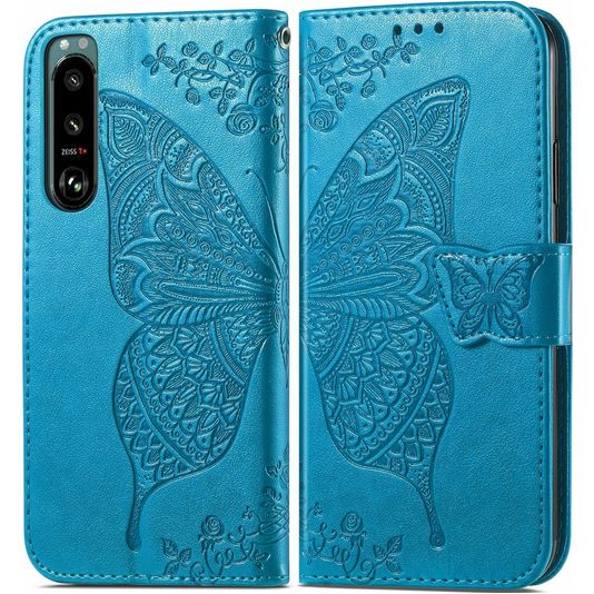 Mobigear Butterfly Sony Xperia 5 IV Hülle Klapphülle Geldbörse - Blau