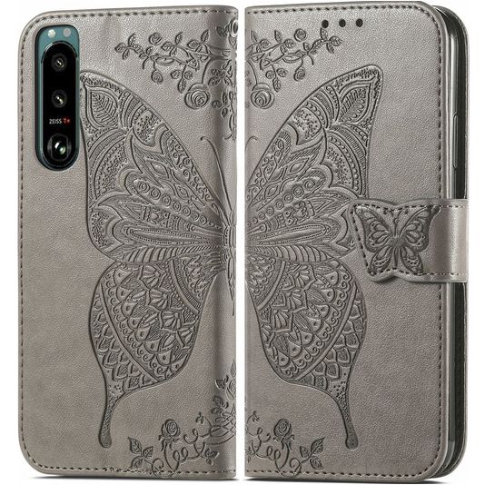 Mobigear Butterfly Sony Xperia 5 IV Hülle Klapphülle Geldbörse - Grau
