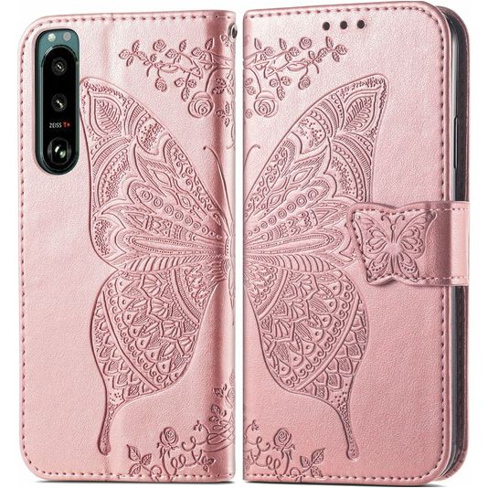 Mobigear Butterfly Sony Xperia 5 IV Hülle Klapphülle Geldbörse - Roségold