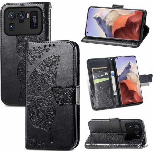 Mobigear Butterfly Xiaomi Mi 11 Ultra Hülle Klapphülle Geldbörse - Schwarz