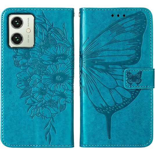 Mobigear Butterfly Motorola Moto G54 Hülle Klapphülle Geldbörse - Blau