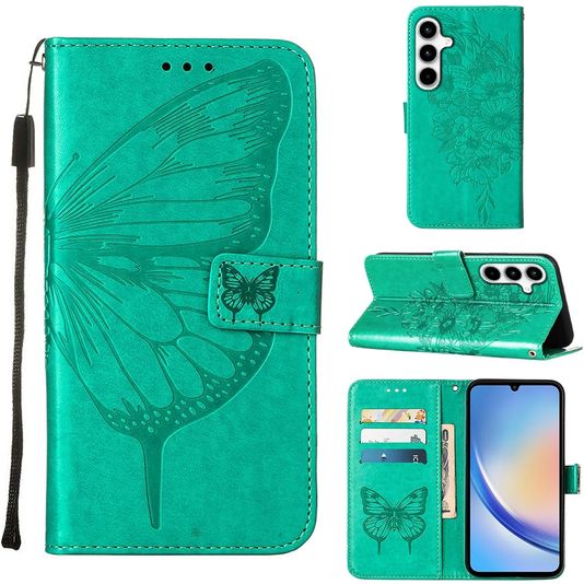 Mobigear Butterfly Samsung Galaxy A35 Hülle Klapphülle Geldbörse - Grün