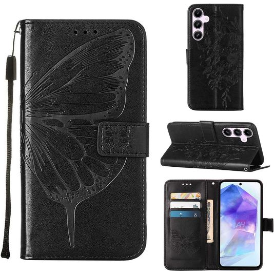 Mobigear Butterfly Samsung Galaxy A55 Hülle Klapphülle Geldbörse - Schwarz