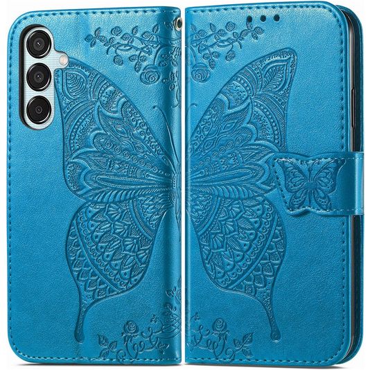 Mobigear Butterfly Samsung Galaxy M15 Hülle Klapphülle Geldbörse - Blau