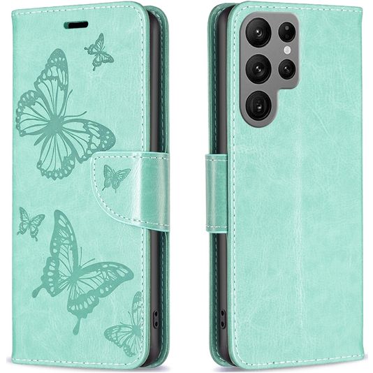 Mobigear Butterfly Samsung Galaxy S24 Ultra Hülle Klapphülle Geldbörse - Grün
