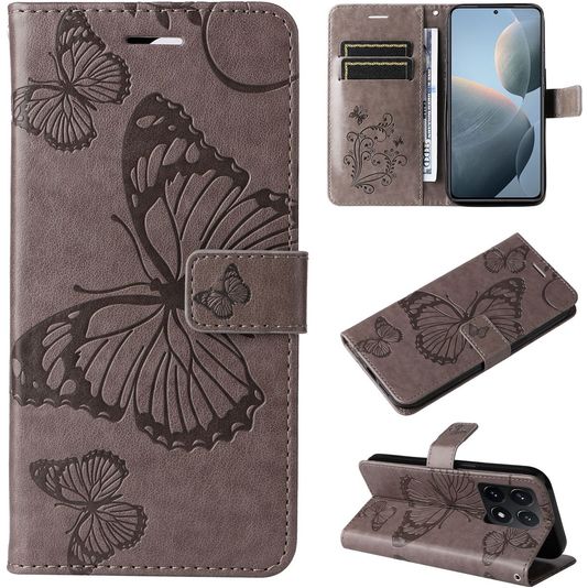 Mobigear Butterfly Xiaomi 14T Hülle Klapphülle Geldbörse - Grau