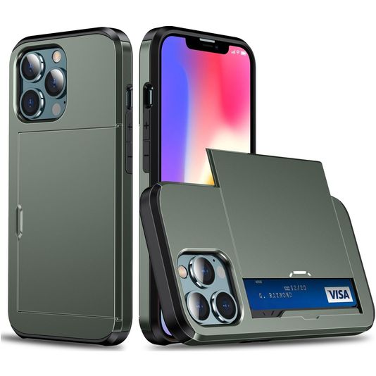 Mobigear Card iPhone 13 Pro Hülle Hardcase Backcover Stoßfest mit Kartenhalter - Armeegrün