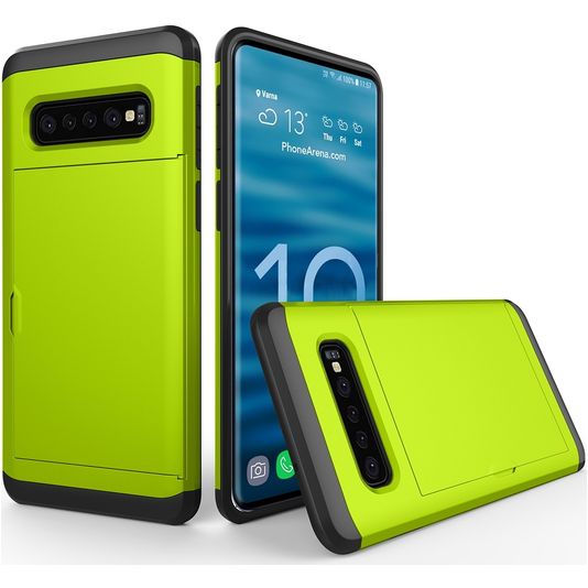 Mobigear Card Samsung Galaxy S10 Hülle Hardcase Backcover Stoßfest mit Kartenhalter - Grün