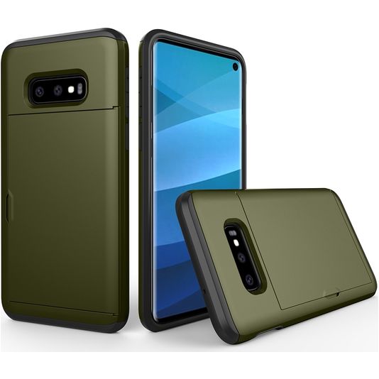 Mobigear Card Samsung Galaxy S10e Hülle Hardcase Backcover Stoßfest mit Kartenhalter - Armeegrün