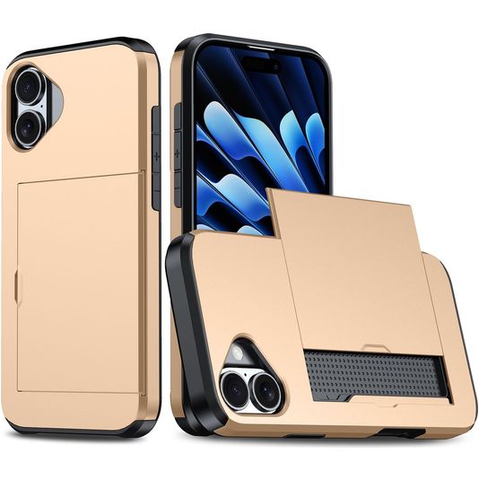 Mobigear Card iPhone 16 Hülle Hardcase Backcover Stoßfest mit Kartenhalter - Gold