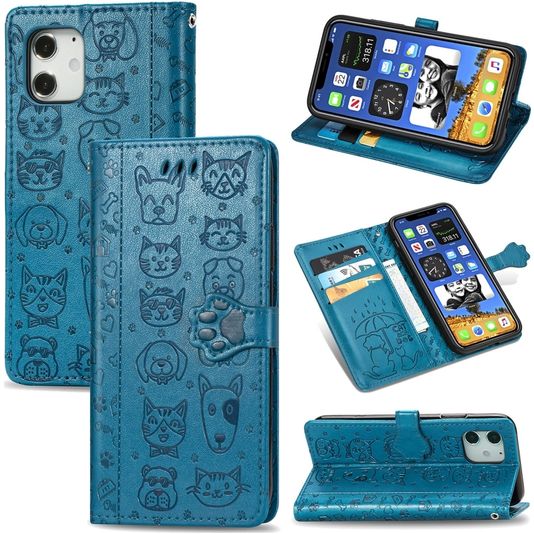Mobigear Cat and Dog iPhone 12 Pro Hülle Klapphülle Geldbörse - Blau