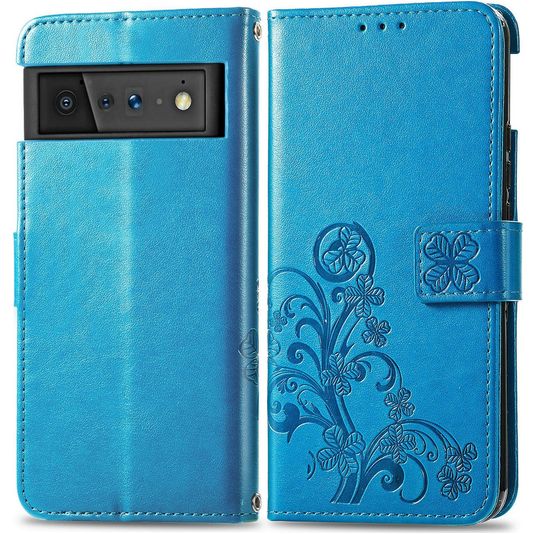 Mobigear Clover Google Pixel 6 Pro Hülle Klapphülle Geldbörse - Blau