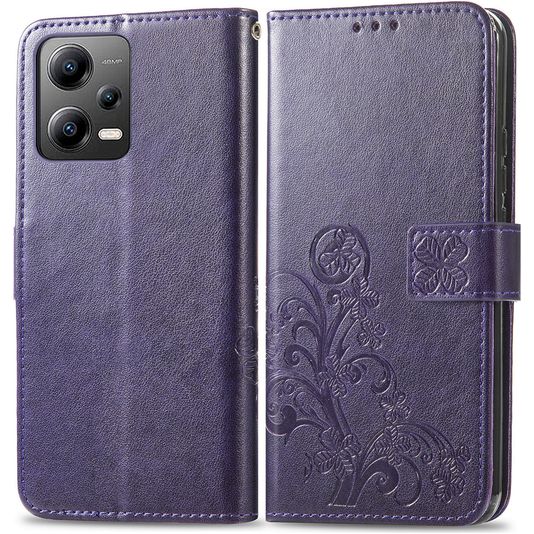Mobigear Clover POCO X5 Hülle Klapphülle Geldbörse - Lila