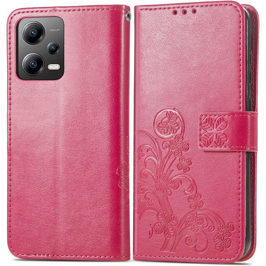 Mobigear Clover POCO X5 Hülle Klapphülle Geldbörse - Magenta
