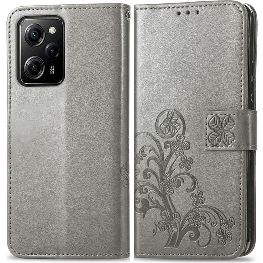 Mobigear Clover POCO X5 Pro Hülle Klapphülle Geldbörse - Grau