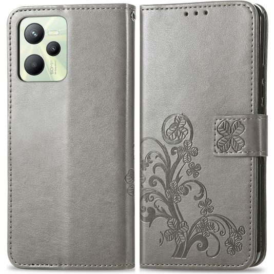 Mobigear Clover Realme C35 Hülle Klapphülle Geldbörse - Grau