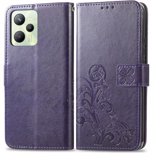 Mobigear Clover Realme C35 Hülle Klapphülle Geldbörse - Lila