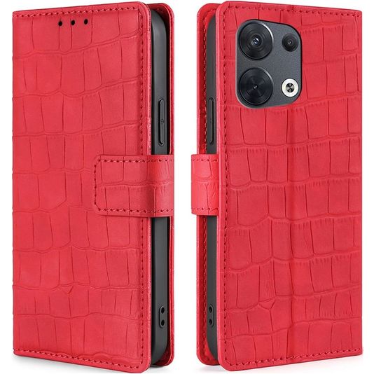 Mobigear Croco OPPO Reno 8 5G Hülle Klapphülle Geldbörse - Rot