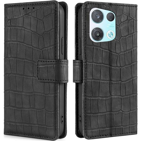 Mobigear Croco OPPO Reno 8 Pro 5G Hülle Klapphülle Geldbörse - Schwarz