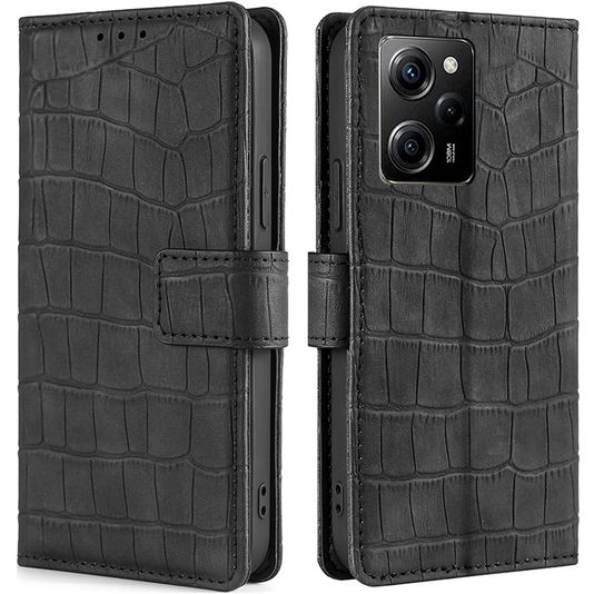 Mobigear Croco POCO X5 Pro Hülle Klapphülle Geldbörse - Schwarz