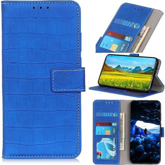 Mobigear Croco Samsung Galaxy A52 Hülle Klapphülle Geldbörse - Blau