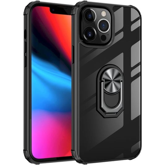 Mobigear Crystal Ring iPhone 14 Plus Hülle Hardcase Backcover mit Ringhalter - Transparent / Schwarz