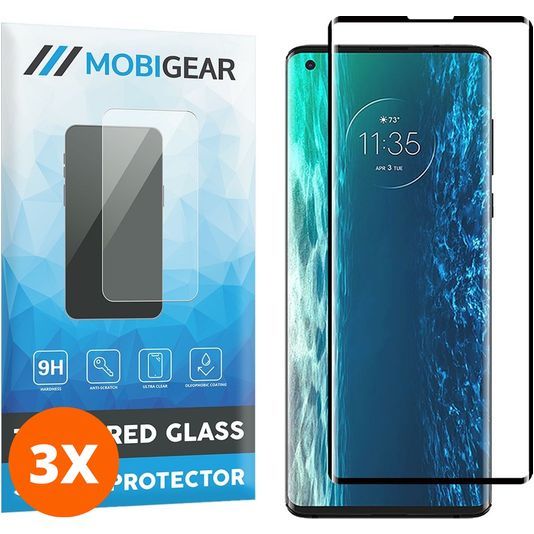 Mobigear Curved Motorola Edge (2020) Panzerglas Gehärtetes Glas Displayschutz - Hüllenfreundlich - Schwarz (3er Pack)