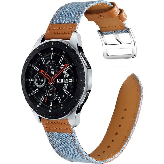 Mobigear Denim Leder Smartwatch Armband Dornschließe - 22-mm-Universalanschluss - Braun / Blau