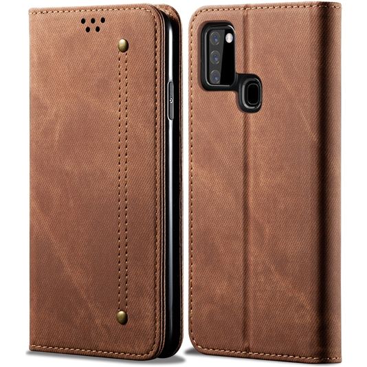 Mobigear Denim Slim Samsung Galaxy A21s Hülle Klapphülle Geldbörse - Braun