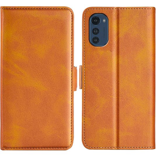 Mobigear Slim Magnet Motorola Moto E32s Hülle Klapphülle Geldbörse - Cognac