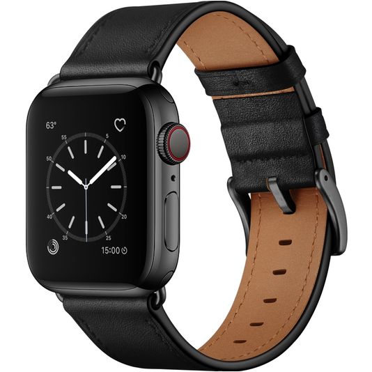 Mobigear Firenze Leder Apple Watch Armband Dornschließe - 49/46/45/44 mm - Schwarz