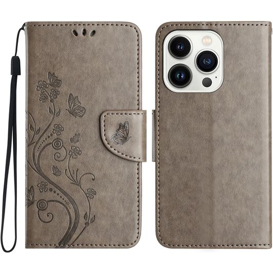 Mobigear Flowers iPhone 16 Pro Max Hülle Klapphülle Geldbörse - Grau