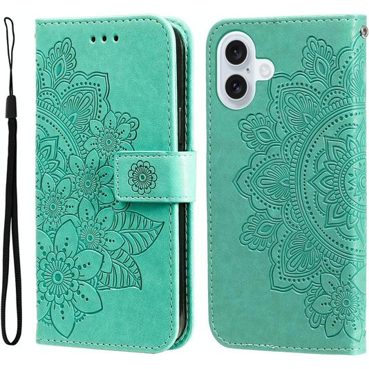Mobigear Flowers iPhone 17 Hülle Klapphülle Geldbörse - Grün