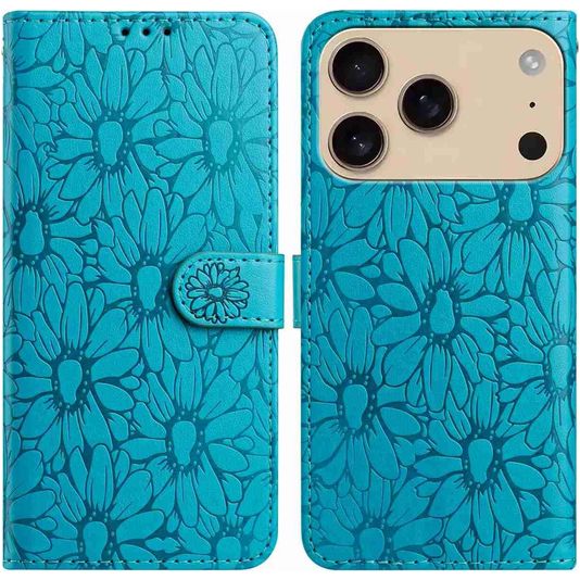 Mobigear Flowers iPhone 17 Pro Hülle Klapphülle Geldbörse - Blau