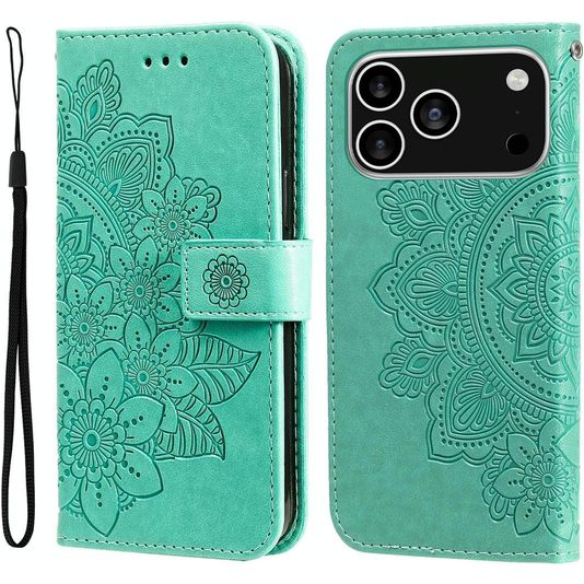 Mobigear Flowers iPhone 17 Pro Hülle Klapphülle Geldbörse - Grün