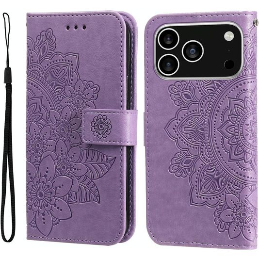 Mobigear Flowers iPhone 17 Pro Hülle Klapphülle Geldbörse - Lila