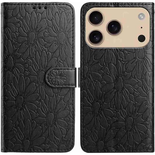 Mobigear Flowers iPhone 17 Pro Hülle Klapphülle Geldbörse - Schwarz