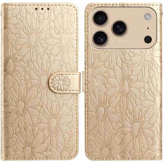 Mobigear Flowers iPhone 17 Pro Max Hülle Klapphülle Geldbörse - Gold