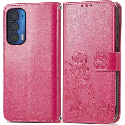 Mobigear Clover Motorola Edge (2021) Hülle Klapphülle Geldbörse - Magenta