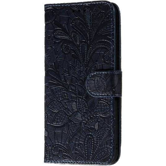 Mobigear Flowers Motorola Moto E6s (2020) Hülle Klapphülle Geldbörse - Dunkelblau