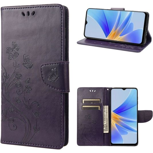 Mobigear Flowers OPPO A17 Hülle Klapphülle Geldbörse - Lila