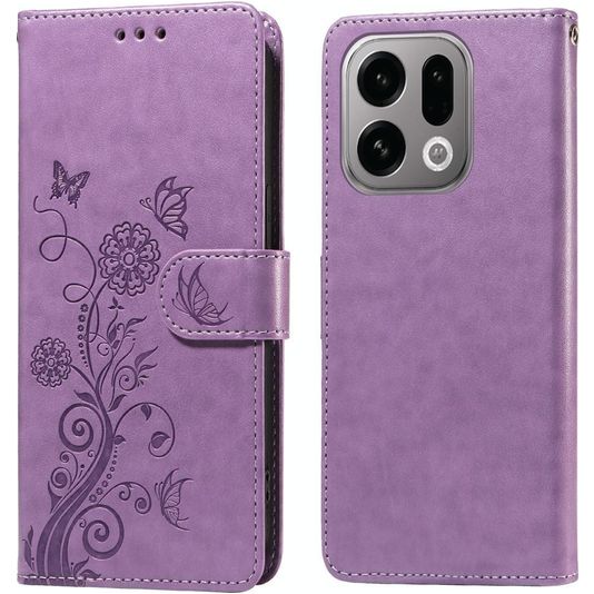 Mobigear Flowers OPPO Find X9 Hülle Klapphülle Geldbörse - Lila