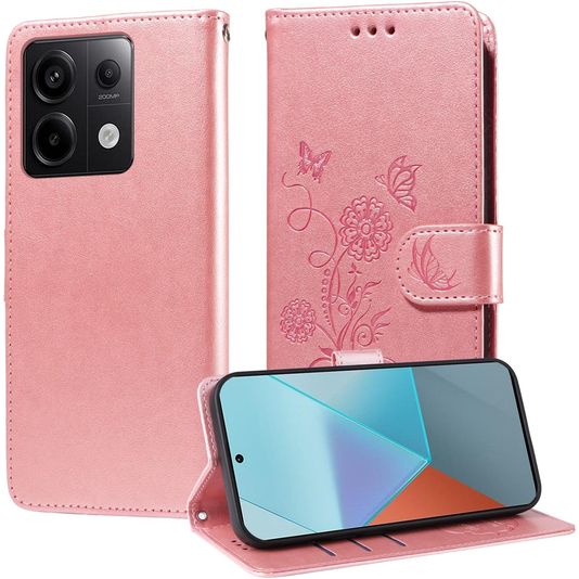 Mobigear Flowers POCO X6 Hülle Klapphülle Geldbörse - Roségold