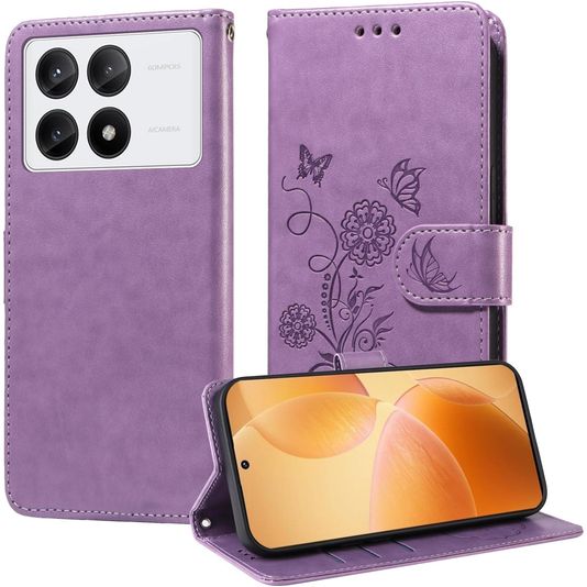 Mobigear Flowers POCO X6 Pro Hülle Klapphülle Geldbörse - Lila