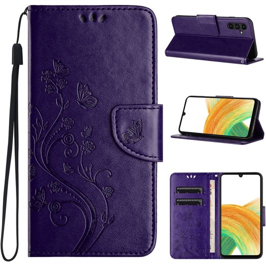Mobigear Flowers Samsung Galaxy A35 Hülle Klapphülle Geldbörse - Lila