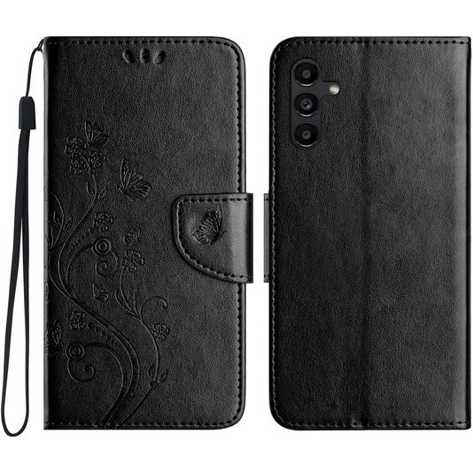 Mobigear Flowers Samsung Galaxy A36 Hülle Klapphülle Geldbörse - Schwarz