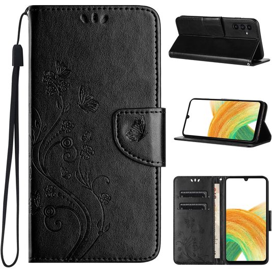 Mobigear Flowers Samsung Galaxy A55 Hülle Klapphülle Geldbörse - Schwarz