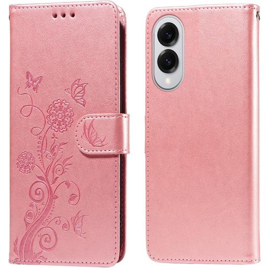Mobigear Flowers Samsung Galaxy S25 Edge Hülle Klapphülle Geldbörse - Roségold