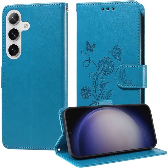 Mobigear Flowers Samsung Galaxy S25 Plus Hülle Klapphülle Geldbörse - Blau