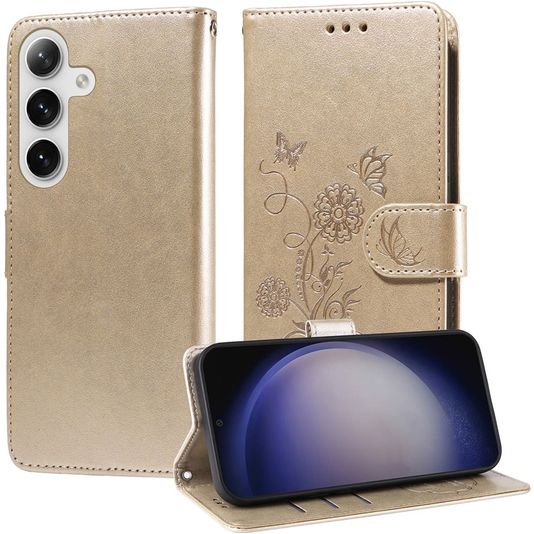 Mobigear Flowers Samsung Galaxy S25 Plus Hülle Klapphülle Geldbörse - Gold